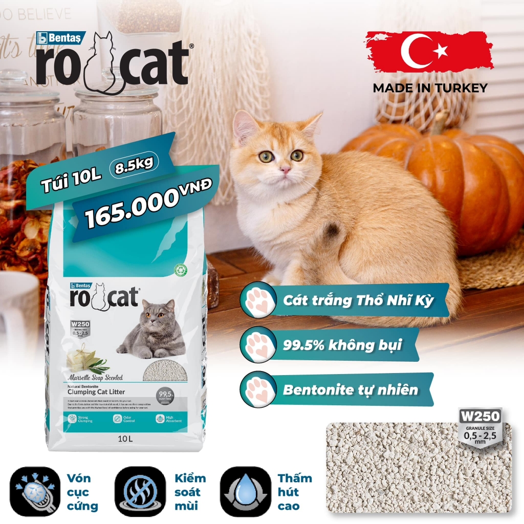 - Đổ, trộn 1 nửa Rocat với nửa còn lại là cát vệ sinh mà bạn đang sử dụng. Sau khi mèo đã quen với kết cấu tinh thể (khoảng một tuần), hãy đổ hoàn toàn hỗn hợp cát đã trộn lẫn trước đó vào thùng rác và sử dụng hoàn toàn bằng cát vệ sinh Rocat.