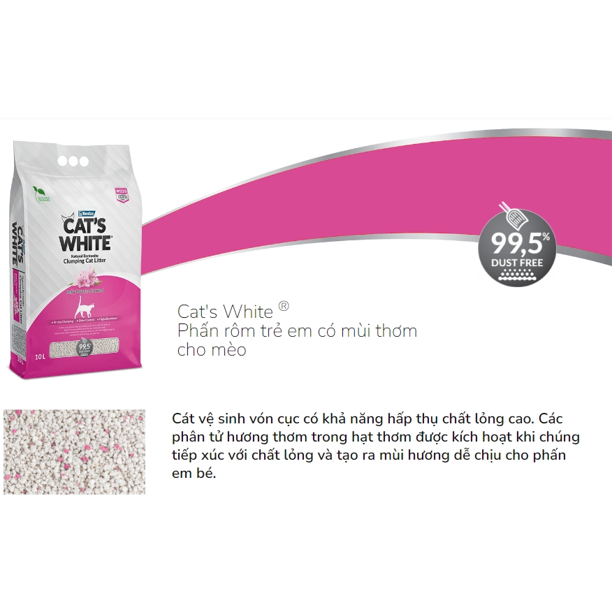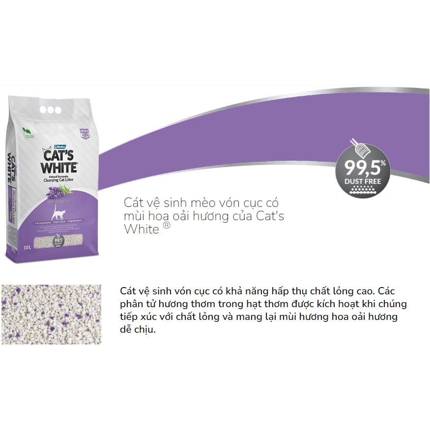 - Đổ, trộn 1 nửa Cat's White với nửa còn lại là cát vệ sinh mà bạn đang sử dụng. Sau khi mèo đã quen với kết cấu tinh thể (khoảng một tuần), hãy đổ hoàn toàn hỗn hợp cát đã trộn lẫn trước đó vào thùng rác và sử dụng hoàn toàn bằng cát vệ sinh Cat's White.