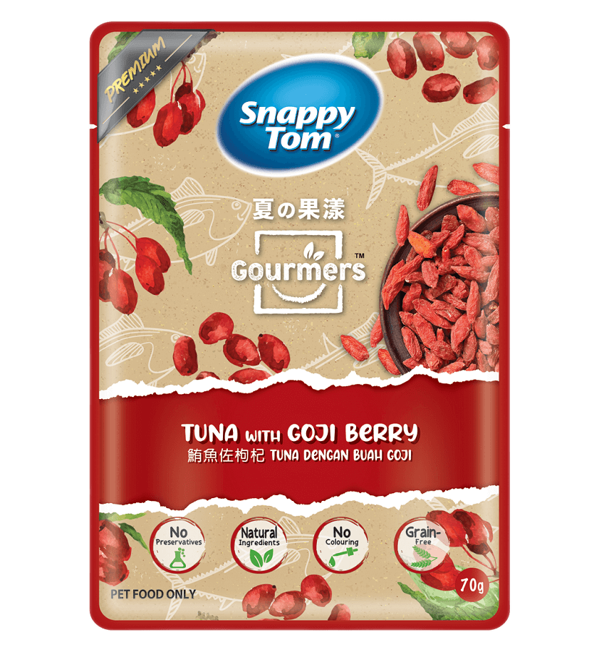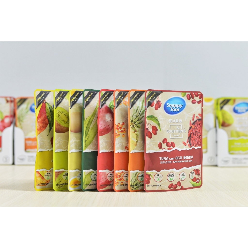 Tại Snappy Tom, chúng tôi tin rằng nguyên liệu tươi và tự nhiên là thành phần tốt nhất. Lấy cảm hứng từ trang trại và vườn cây ăn quả, chúng tôi giới thiệu dòng sản phẩm Snappy Tom Gourmers thơm ngon, tốt cho sức khỏe và bổ dưỡng. Sản phẩm là thức ăn ướt hoàn hảo cho mèo của bạn.