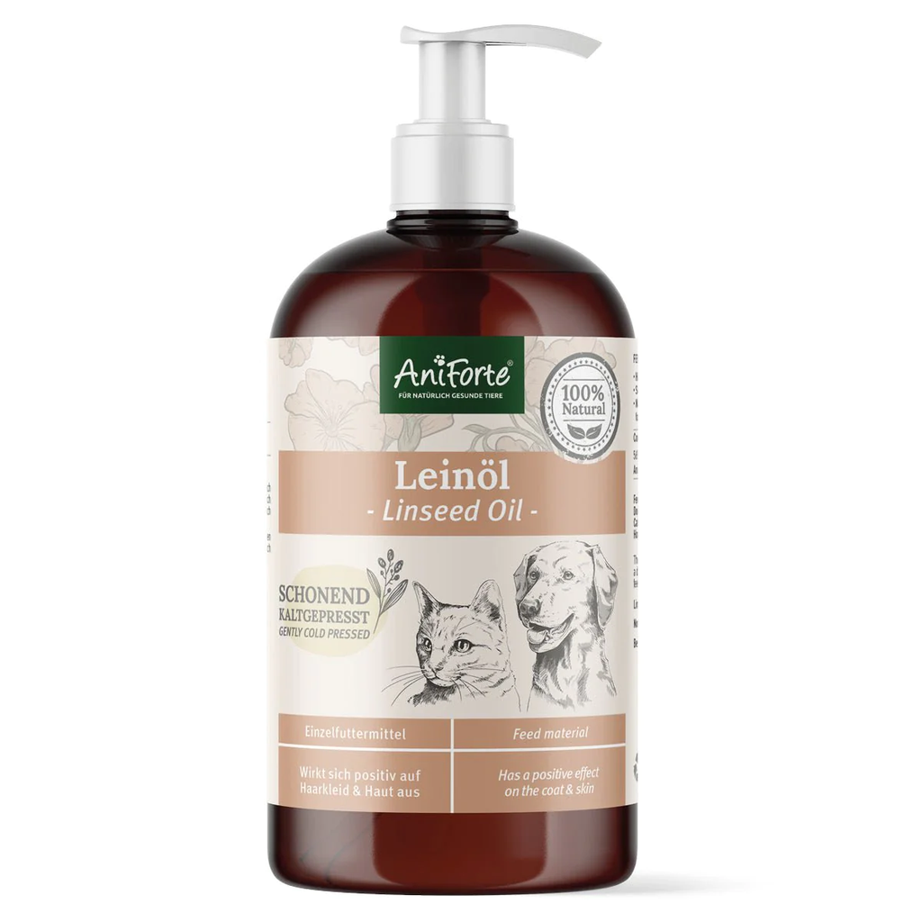 Dầu hạt lanh AniForte là sản phẩm hoàn toàn tự nhiên có chất lượng cao nhất và có tác động tích cực đến vẻ ngoài của da và lông. Đó là lý do tại sao chải chuốt cho người bạn bốn chân của bạn là trò chơi trẻ con. Quy trình ép lạnh và chế biến nhẹ nhàng cung cấp cho con yêu của bạn các axit béo không bão hòa cấp thực phẩm có giá trị. Chúng tôi khuyên bạn nên cung cấp dầu hạt lanh AniForte® thường xuyên cho chó và mèo, đặc biệt là khi thay lông .