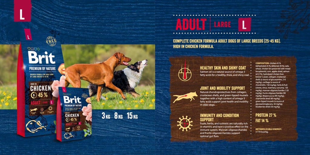 Công thức hoàn chỉnh từ gà dành cho chó trưởng thành thuộc giống lớn (25-45 kg).