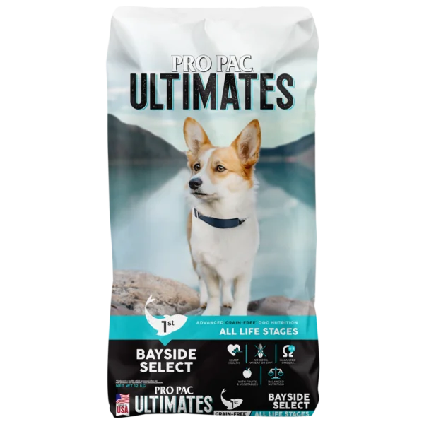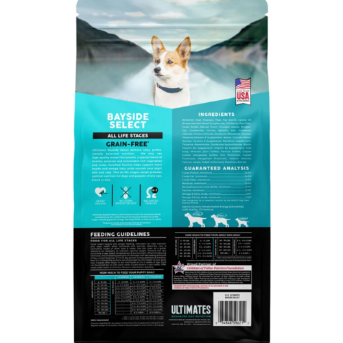 Bayside Select là một cách tiếp cận mới mẻ đối với dinh dưỡng siêu cao cấp không chứa ngũ cốc. Với công thức đơn giản, thành phần bổ dưỡng từ cá thịt trắng (>20%), khoai tây (20%), & trái cây & rau quả (>12%), Ultimates – Bayside Select cung cấp dinh dưỡng hoàn chỉnh & chế độ ăn uống cân bằng không sử dụng ngũ cốc, màu nhân tạo, hương vị hoặc chất bảo quản. Màu sắc thay đổi tự nhiên. Ultimates – Bayside Select đáp ứng các mức dinh dưỡng do Hiệp hội các quan chức kiểm soát thức ăn chăn nuôi Hoa Kỳ (AAFCO) thiết lập cho tất cả các giai đoạn sống.