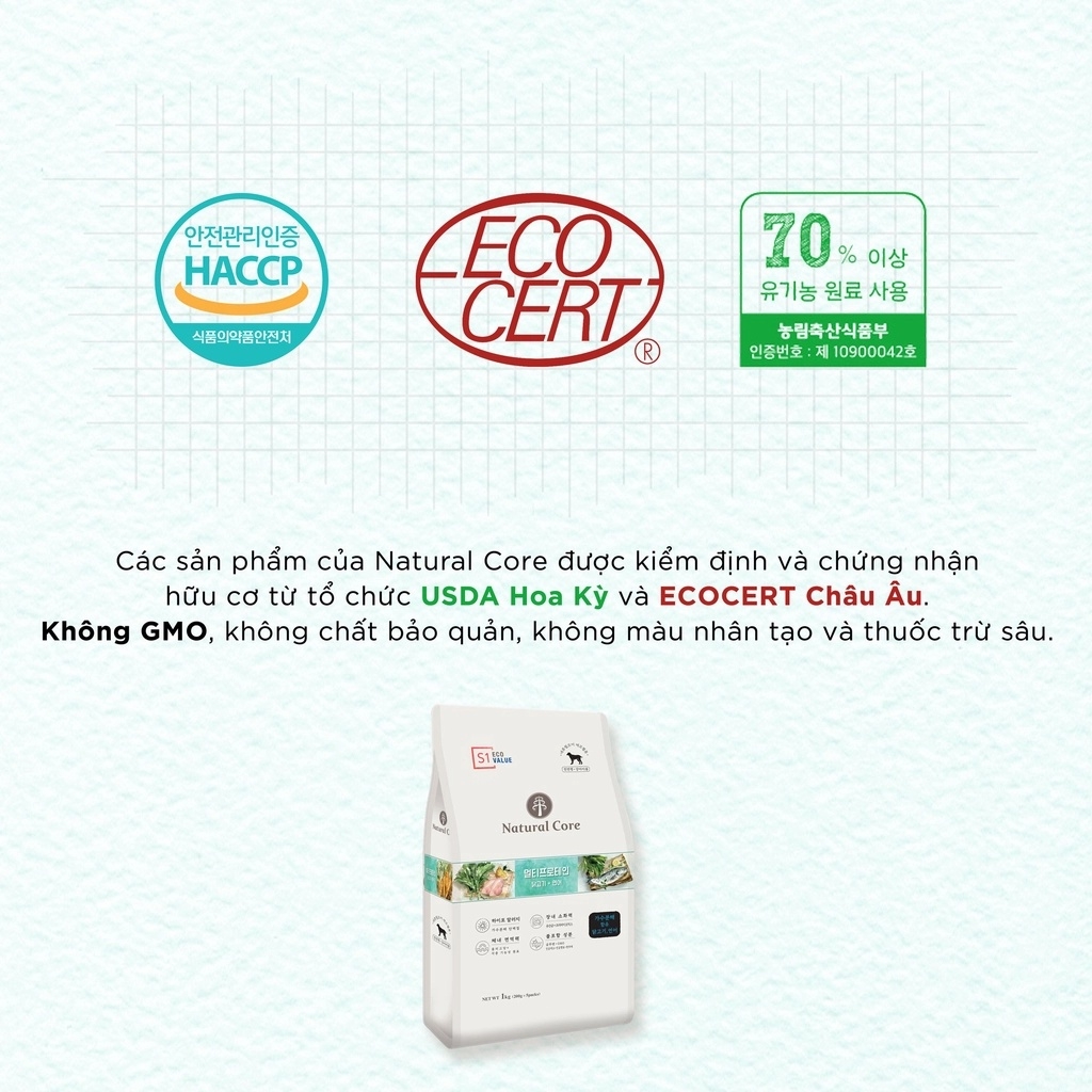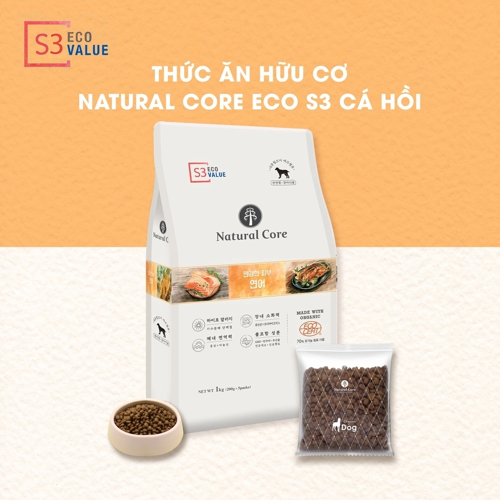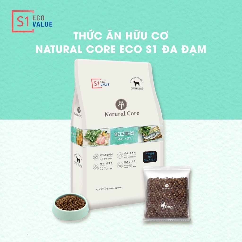 6kg - Hạt Natural Core hữu cơ đủ dòng S1 S2 S3 cho Chó - Thức ăn cho chó Đa đạm thành phần Cá hồi, Thịt CừuThịt được chế biến theo công thức thủy phân, đem lại nhiều lợi ích cho sức khỏe. Cung cấp protein chất lượng cao Cải thiện chức năng tiêu hóa, ngăn ngừa tiêu chảy, giảm mùi phânChống oxy hóa, ngăn ngừa lão hóa, phòng ngừa bệnh béo phìHỗ trợ tiêu hóa, tối đa khả năng hấp thu dinh dưỡng, đặc biệt phù hợp với chó con và chó lớn tuổi Giữ đẹp vóc dáng, đẹp da, đẹp lôngSản phẩm Natural Core hiện có 03 dòng S:1. Dòng S1 Đa đạm:Thành phần từ:- Thịt Gà: Không chứa phụ gia, Sử dụng loại thịt gà nạc tốt nhất, Tốt cho chó tiêu hóa yếu- Cá Hồi: Tái tạo da & kích hoạt các tế bào não, Giàu vitamin D và Omega-3- Hắc Mai Biển: Chống oxy hóa, Cung cấp các loại Vitamin, ngăn ngừa béo phì- Các thành phần hữu cơ khác chứa nhiều polyphenol, tăng cường khả năng miễn dịch.2. Dòng S2 Thịt Cừu- Thịt Cừu: Nhiều axit amin chất lượng cao, Tốt cho việc phục hồi năng lượng, Giàu protein tốt cho chó già- Thịt Gà: Không chứa phụ gia, Sử dụng loại thịt gà nạc tốt nhất, Tốt cho chó tiêu hóa yếu- Lactobacililus & Oligosaccharide: Chiế xuất lên men tạo vi khuẩn có lợi cho đường ruột, Cải thiện chức năng tiêu hóa & ngăn ngừa tiêu chảy & giảm mùi ph ân.3. Dòng S3 Cá HồiThức ăn hữu cơ đa đạm cho chó Natural Core S3 có nguyên liệu chính là cá hồi rút xương kết hợp với các loại rau củ hữu cơ được chế biến bằng công thức thuỷ phân độc quyền, giúp giữ trọn chất dinh dưỡng để mắt cún sáng long lanh.- Cá Hồi: Tái tạo da & kích hoạt các tế bào não, Giàu vitamin D và Omega-3, Không chứa phụ gia, Ngăn ngừa dị ứng- Prebiotics: Chiế xuất lên men tạo các vi khuẩn có lợi cho đường ruột, Cải thiện chức năng tiêu hóa, ngăn ngừa tiêu chảy, giảm mùi hôi phâ n.-------------Garé Pet Shop - Chuyên đồ thú cưngSERVE THE BESTĐại lý Ủy quyền chính hãng phân phối các sản phẩm 5 ⭐⭐⭐⭐⭐ hàng đầu Thế giới dành cho thú cưng nhập khẩu trực tiếp từ Hoa Kỳ, Anh, Đức, Pháp, Italy, Canada,... #Tropiclean, #Gimborn, #Gimcat, #Gimdog, #Farmina, #Nutrience, #Earthborn, #ProPac, #Royal_Canin, #Instinct, #Grau, #Felina, #Sheba, #Brit, #Beaphar, #Feliway, #Virbac, #Canina, #Frontline, #Revolution...