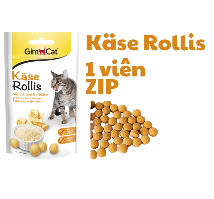 Viên GimCat Kase Rollis Cheezies Tabs là một loại bánh thưởng dành cho mèo, được sản xuất bởi thương hiệu GimCat nổi tiếng của Đức. Sản phẩm được làm từ phô mai cứng, được bổ sung thêm vitamin và khoáng chất, giúp mèo tiêu hóa tốt, giảm stress và kích thích mèo chơi đùa.