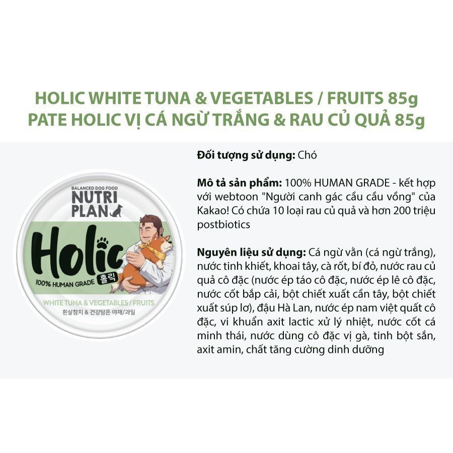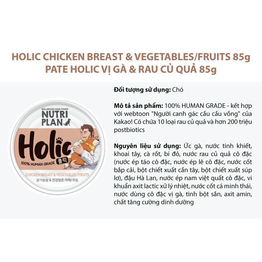 Pate Holic cho chó là một sản phẩm thức ăn cho chó được sản xuất tại Hàn Quốc, được nhập khẩu và phân phối chính hãng tại Việt Nam. Sản phẩm được làm từ các nguyên liệu tươi ngon, giàu dinh dưỡng, mang đến cho chó sự ngon miệng và đầy đủ dưỡng chất.
