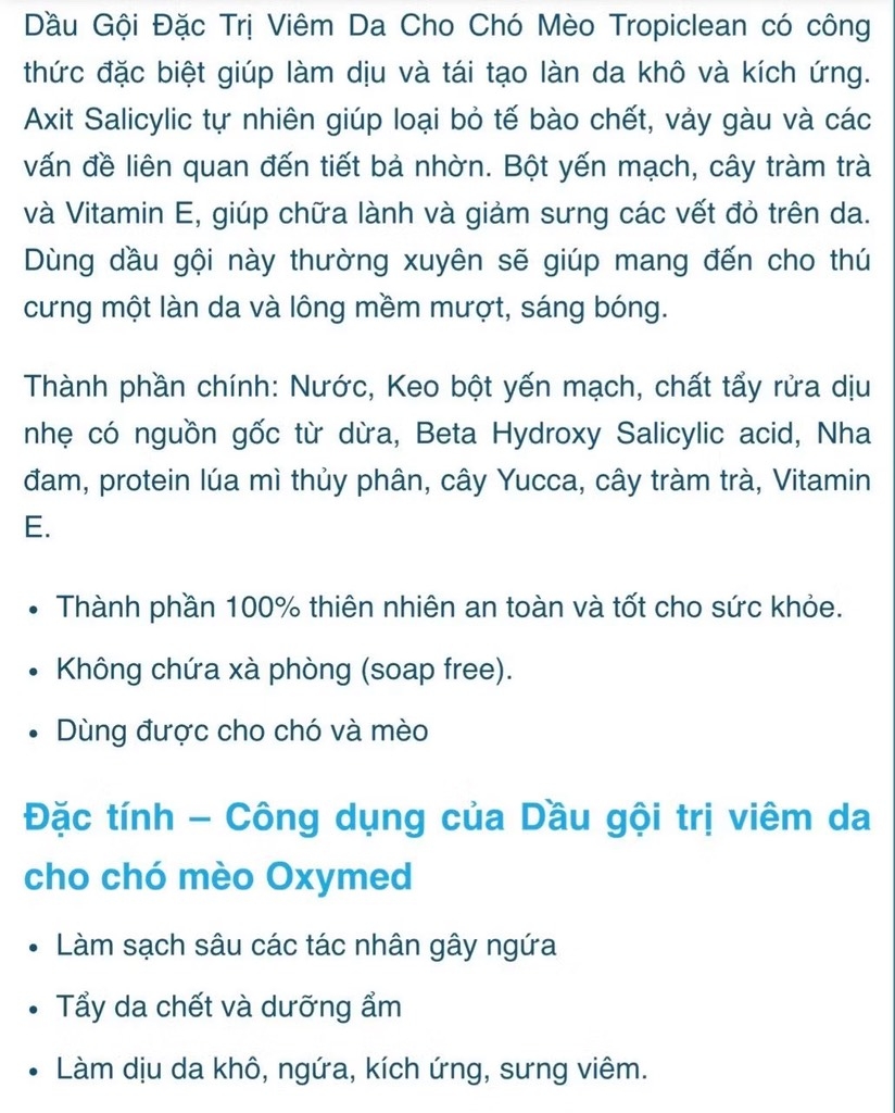 Sữa tắm Oxymed Anti-itch Shampoo Tropiclean - Sữa tắm làm dịu da khô, ngứa, kích ứng và viêm