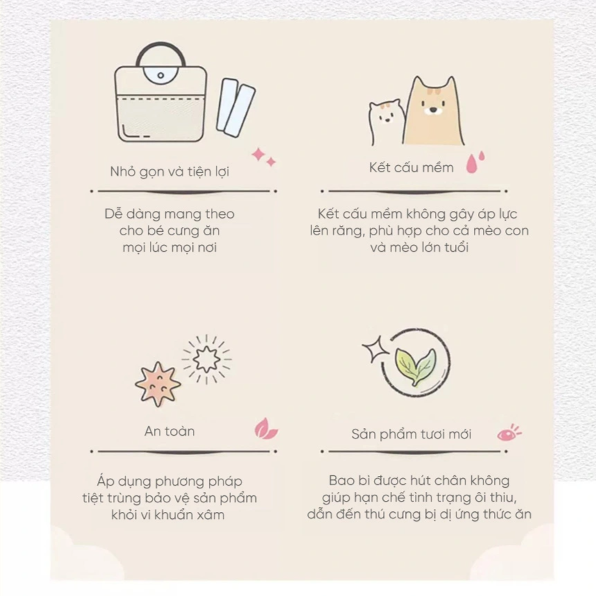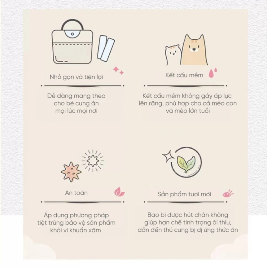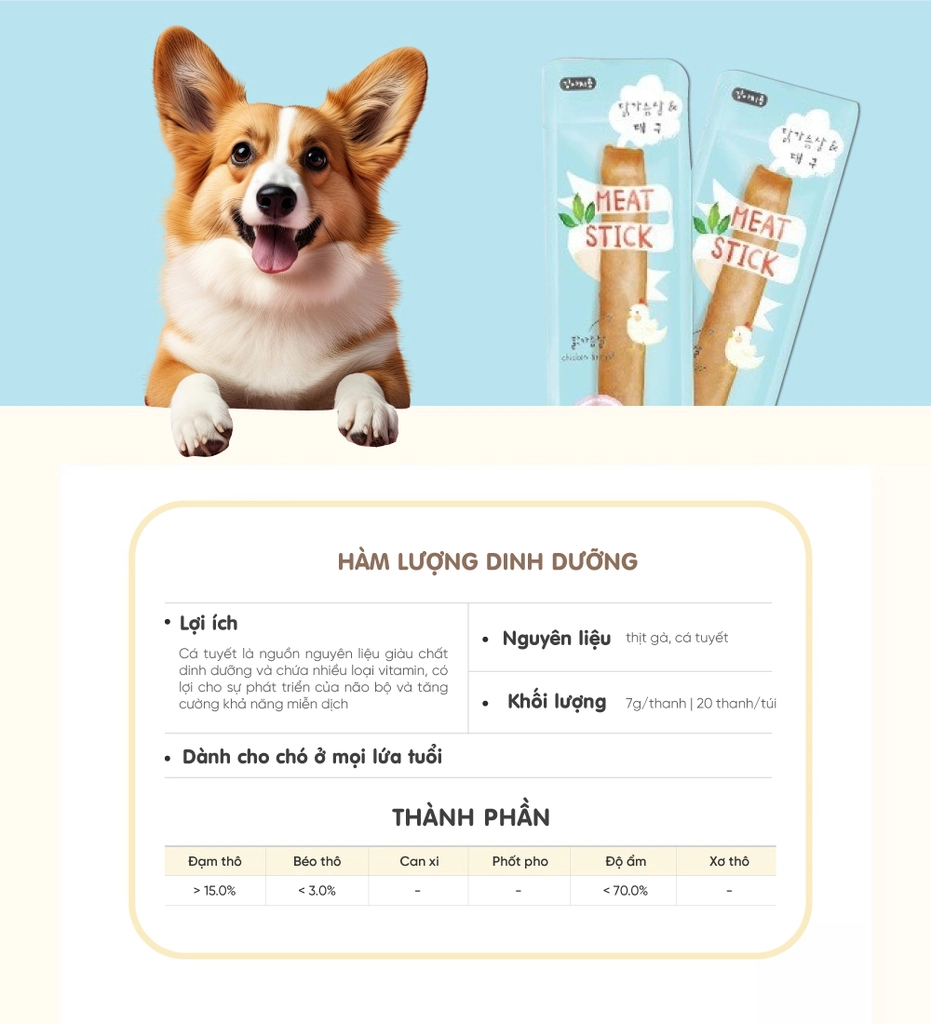 - Bánh thưởng với kết cấu mềm, không gây áp lực lên răng và hệ tiêu hoá, phù hợp cho cả cún con và cún lớn tuổi.