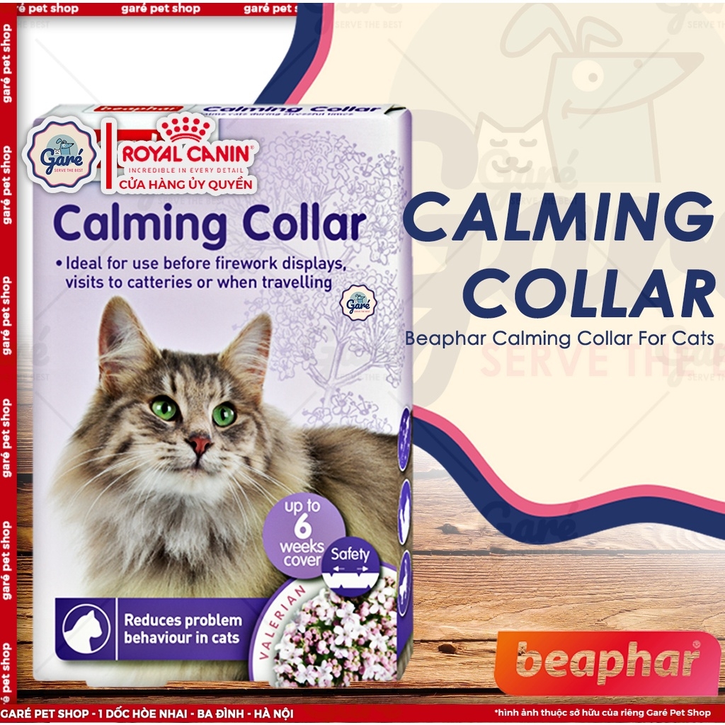 BEAPHAR CALMING COLLAR - VÒNG CỔ THƯ GIÃNVòng cổ chứa tinh chất được chiết xuất từ thiên nhiên, có hiệu quả giảm các vấn đề do căng thẳng ở mèo thuộc mọi giống và mọi lứa tuổi. Phù hợp cho mèo khi di chuyển xa hoặc nơi đông người.Hiệu quả kéo dài đến 6 tuần!Vòng cổ thư giãn Beaphar giúp giảm các hành vi tinh nghịch do chú mèo của bạn gây ra khi chúng gặp căng thẳng, có thể sử dụng cho mọi giống mèo độ tuổi.Các loại tinh dầu chiết xuất từ thiên nhiên có trong vòng cổ sẽ được giải phóng từ từ trong vòng 3-4 tuần để giúp chú mèo của bạn cảm thấy thư giãn, bình tĩnh hơn, từ đó giảm các hành vi phá hoại.Đối với những chú mèo vừa về nhà mới, việc thay đổi môi trường sống có thể khiến chúng cảm thấy căng thẳng. Sử dụng vòng cổ thư giãn Beaphar để giúp chú mèo của bạn nhanh chóng hòa nhập với môi trường mới và cảm thấy an toàn để thoải mái mở lòng trở thành một người bạn đồng hành đích thực trong gia đình.THÔNG TIN SẢN PHẨMThành phần Valerian (Nữ Lang) và Lavender (Oải Hương) thường được sử dụng trong các sản phẩm chăm sóc sức khỏe con người, có hiệu quả kiểm soát căng thẳng, giảm lo âu và đã được chứng minh công dụng làm giảm việc sủa, nhai đồ, đánh dấu mùi và các hành vi không mong muốn khác ở chó.Vòng cổ có tác dụng trong thời gian dài, nên ngoài việc giúp một chú mèo nhanh chóng hòa nhập với môi trường mới, còn phù hợp với những chú mèo phải thường xuyên đi nhà trẻ hoặc đến phòng khám thú y. Hoặc đeo vào cho chú mèo của bạn mỗi khi gia đình có tiệc tùng, nhiều người ra vào.Khi đeo vòng cổ vào, tinh chất Valerian sẽ được phóng thích ngay lập tức và giúp chú mèo của bạn cảm thấy dễ chịu, thư giãn trong khoảng 1 giờ.HƯỚNG DẪN SỬ DỤNG- Không tháo sản phẩm ra khỏi hộp cho đến khi bạn sử dụng ngay sau đó.- Điều chỉnh vòng cổ bảo đảm vừa vặn thoải mái sao cho có thể chèn được 2 ngón tay vào giữa vòng cổ và cổ.- Nếu sử dụng cho một chú mèo con đang trong thời kỳ tăng trưởng hãy nhớ nới lỏng vòng cổ thường xuyên.- Có thể cắt bỏ phần thừa.- Để sản phẩm phát huy hiệu quả, vòng cổ phải được tiếp xúc trực tiếp với da.- Nếu vòng cổ bị ướt, lau khô và sử dụng như bình thường.- Tháo vòng cổ ra khi tắm và đeo lại sau khi lông đã khô.- Không sử dụng trên vùng da bị bỏng hoặc có vết thương.------------ Tìm thêm về chúng mình tại: Garé Pet Shop - Chuyên đồ thú cưng - Cửa hàng ủy quyền Tropiclean/ Farmina/Gimcat/ Royal Canin/ Pro Pac Ultimates/ Earthborn Holistic/ Gemon/ Monge Vetsolution Simba chính hãng 🎪