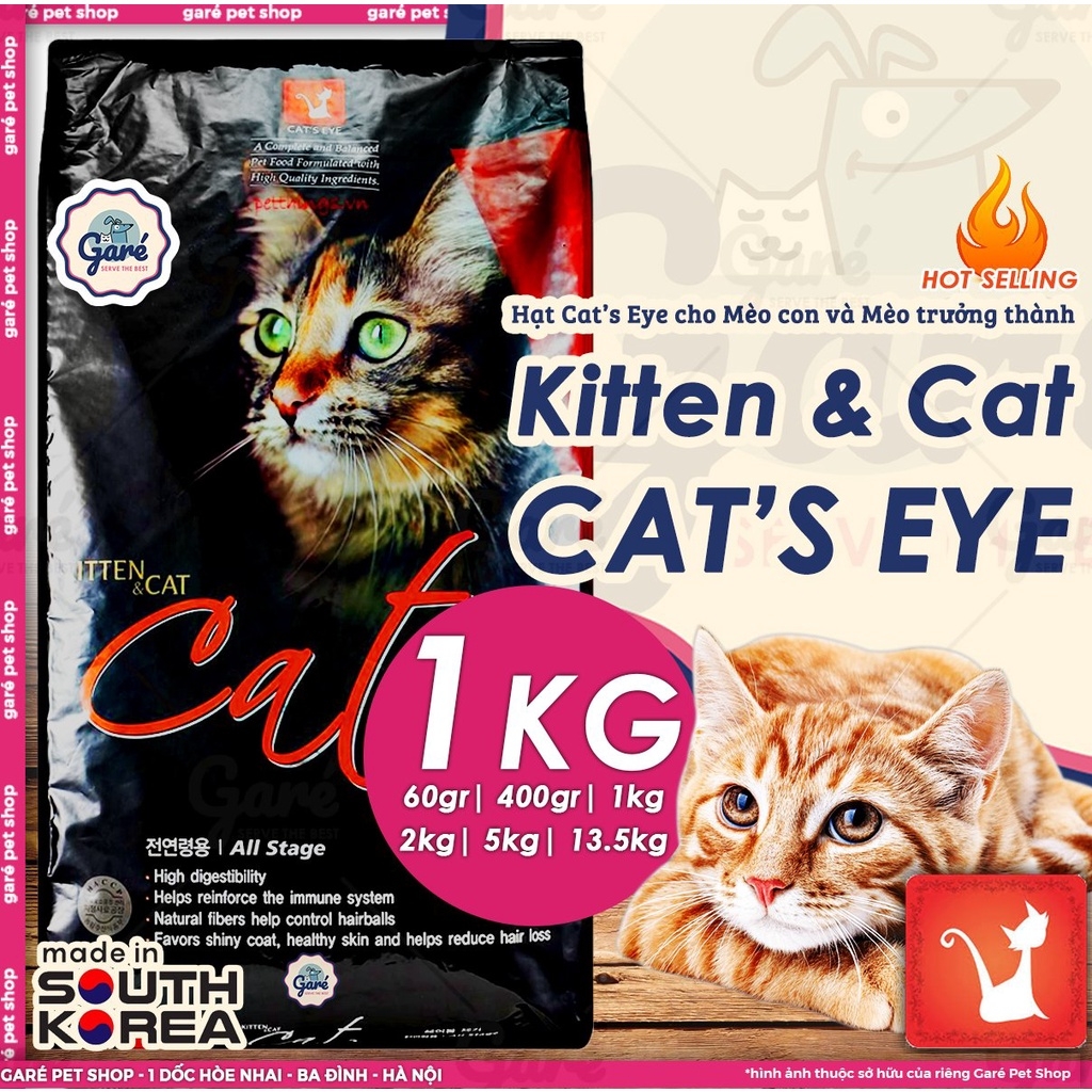 Mô tả chungThức ăn hạt cho mèo Cat eye được làm từ những thành phần dễ tiêu hóa và cực kỳ ngon miệng sẽ giúp tăng cường hệ thống miễn dịch, cải thiện khả năng hấp thụ dinh dưỡng, tăng cường sức khỏe đại tràng và giảm lãng phí thức ăn ăn vào của mèo. Hạt được sản xuất và nhập khẩu trực tiếp từ Hàn Quốc.Đối tượng sử dụngDành cho mèo con trên 3 tháng tuổiThành phầnCông thức hạt chứa chất xơ tự nhiên và bột củ cải đường giúp kiểm soát, ngặn ngừa rụng lông ở mèo. Vitamin A và taurine Trong Cat eye giúp cho đôi mắt tươi sáng, khỏe và thị lực tốt Dinh dưỡng hoàn chỉnh với chất chống oxy hóa quan trọng và giàu đạm chất lượng cao. Dễ tiêu hóa, giúp mèo hấp thụ tối đa dinh dưỡng từ các thực phẩm có ích, tránh lãng phí thức ăn.Thịt gà chất lượng cao giúp mèo ăn ngon miệng hơn. Không màu và hương liệu nhân tạo.Công dụngTốt cho hệ Tiêu hóa; Hỗ trợ, tăng cường hệ miễn dịch Cung cấp chất xơ tự nhiên, kiểm soát rụng lông Giúp da khỏe, lông bóng mượt và giảm chứng rụng lông Cat eye được phối trộn đặc biệt dành cho mèo mọi lứa tuổi để giảm chứng rụng lông, cải thiện bộ lông mèo và cải thiện tiêu hóa.------------ Tìm thêm về chúng mình tại: Garé Pet Shop - Chuyên đồ thú cưng - Cửa hàng ủy quyền Tropiclean/ Farmina/Gimcat/ Royal Canin/ Pro Pac Ultimates/ Earthborn Holistic/ Gemon/ Monge Vetsolution Simba chính hãng 🎪 Cửa hàng: 66 Yên Phụ Lớn, Ba Đình, Hà Nội Shop Yêu Thích+: https://shp.ee/4gipch2#gare #gare_fanpage #tropiclean #earthborn #farmina #pro_pac #royal_canin #matisse #freshbreath #fresh_breath #garepetshop #gare_pet_shop #pets #pet #Royal_Canin #pet_shop* Cửa hàng phân phối sản phẩm chính hãng Garé Pet Shop - Chuyên đồ thú cưng* Địa chỉ: 66 Đường Yên Phụ, Ba Đình, Hà Nội* Tổ chức chịu trách nhiệm về sản phẩm: CTCBIO VIETNAM JOINT-STOCK COMPANY* Sản xuất tại: Hàn Quốc* Nhập khẩu bởi: CTCBIO VIETNAM JOINT-STOCK COMPANY* Địa chỉ: Tăng Nhơn Phú A, Thủ Đức, Tp Hồ Chí Minh